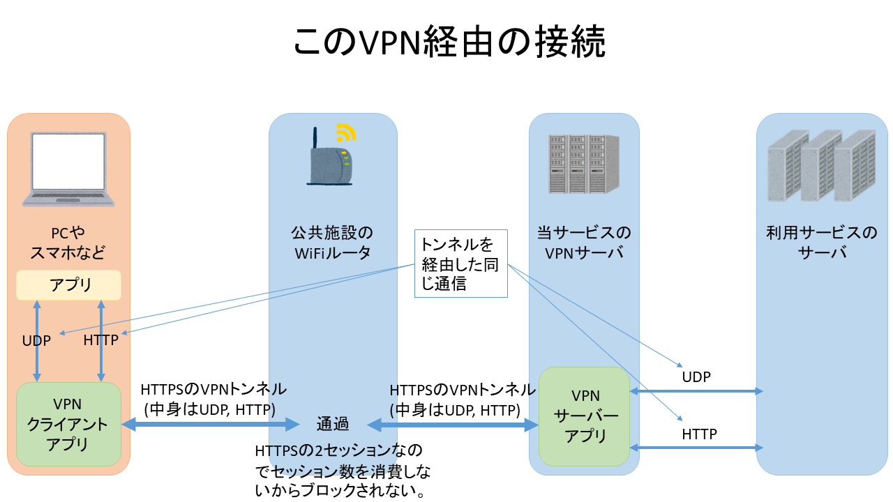 そこでWiFi回線のNATセッション数を多く消費せず(2本のみ)、ほとんどの種類の通信を可能にするシステムを作りました。